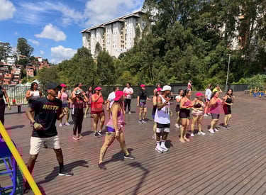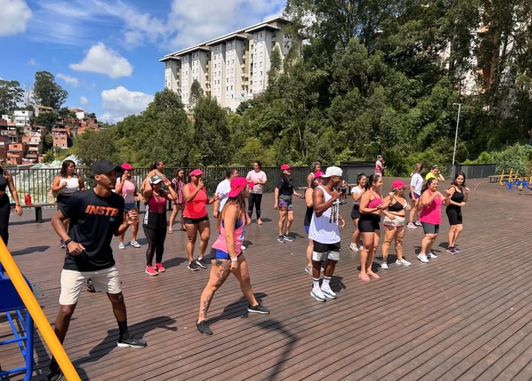 Aulas de zumba e fitdance gratuitas para mulheres da comunidade.